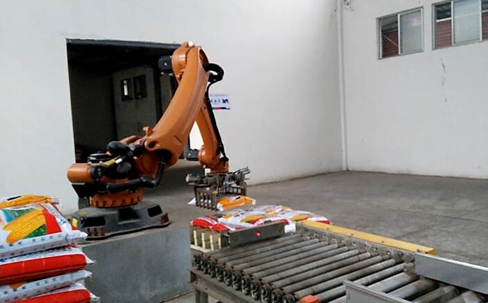 機械手碼垛機可對各種包裝袋、包裝箱進行碼垛,具有堆垛速度快、自動化水平高的特點;碼放時全自動分層編組,自動化程度高;機械手碼垛機模塊化設(shè)計,設(shè)備的穩(wěn)定性高,對托盤的適應(yīng)能力強,只需在觸摸屏上作修改,不影響正常生產(chǎn);機器人本體由質(zhì)量輕、硬度高的高質(zhì)航空合金鋁制作,運行能耗低。